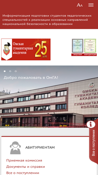 100%в настоящее время чуоо во «омская гуманитарная академия» представляет собой многопрофильный комплекс, в состав которого входят информационно-компьютерный центр, научная библиотека, издательство, центр содействия трудоустройству, факультет дополнительного образования, центр дистанционного образования, аспирантура.
