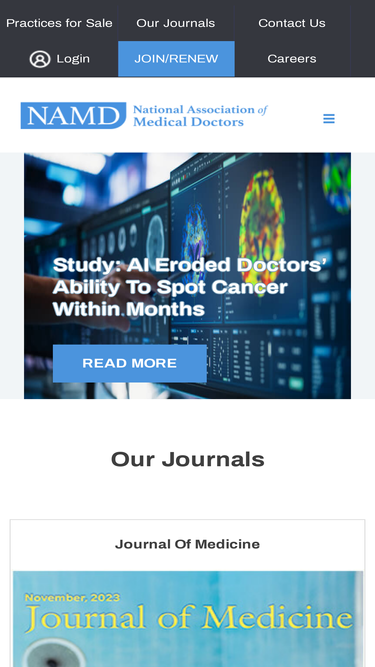 76%The National Association of Medical Doctors (NAMD.ORG) is a non-profit physicians association founded in 1983. We offer doctors peer-reviewed medical journals, awards, grants fellowships, educational, research, best practices,ethics and career opportunities.