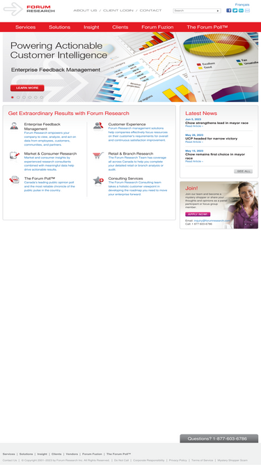 Forum Research is a full-service qualitative and quantitative market research firm located in downtown Toronto specializing in Market Research, Customer Satisfaction, Consumer Research, Customer Experience and Public Opinion Polling on social and political issues at municipal, provincial and federal levels.