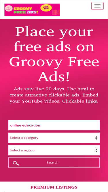 60%post free local classified ads. business opportunity classified ads are welcome. free classified ads can include html descriptions and clickable links, embedding of your youtube video, affiliate link, and up to 3 images. your classified ad will stay live for 90 days. upgrade your ad for just $5. to have your classified ad rotate in the premium sections. premium classified ads rotate at the top of your category and on the home page of our free classified ad site.