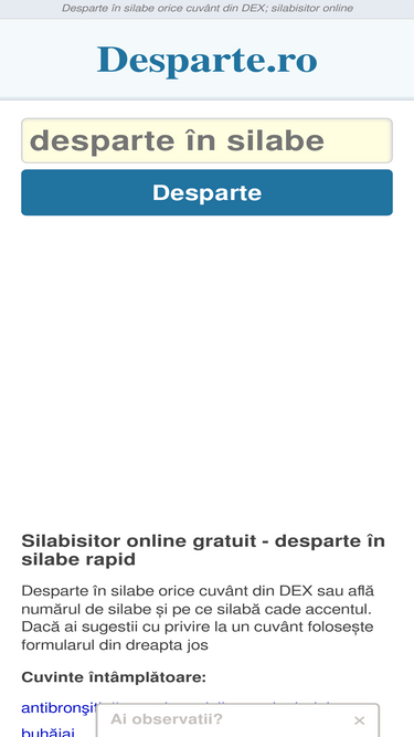 100%cum se despart în silabe cuvintele românești? siliabisitor online gratuit. află câte silabe are orice cuvânt