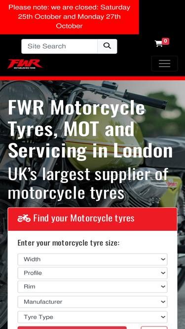 93%FWR Discount Tyres and Motorcycle Accessories