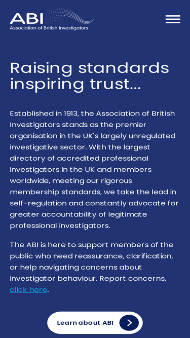 88%ABI holds a comprehensive database of trained investigators in the UK and overseas. Members meet exacting standards and sign up to our rigid code of ethics.