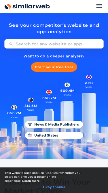 82%Compare website traffic with SimilarWeb.com's advanced traffic estimator tool. See any website's traffic sources & uncover their online marketing strategies.
