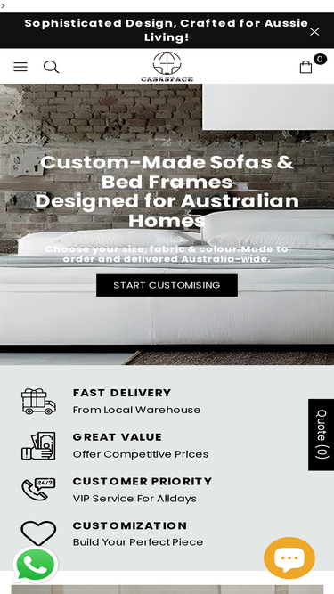 97%Casaspace offers custom-made beds and sofas in Australia with premium fabrics, solid frames, and a 3-year warranty. Explore a wide range of colours and sizes, supported by fabric videos for clarity. Enjoy fast delivery, exceptional craftsmanship, and stylish designs tailored for your home.