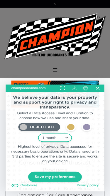 Championbrands.com is committed to protecting your personal data. This Privacy Policy sets out how Championbrands.com uses and protects the information that you give us when you use this website. This policy may change from time to time, so check this page periodically to ensure that you are happy with any changes. What do we collect? Users may choose