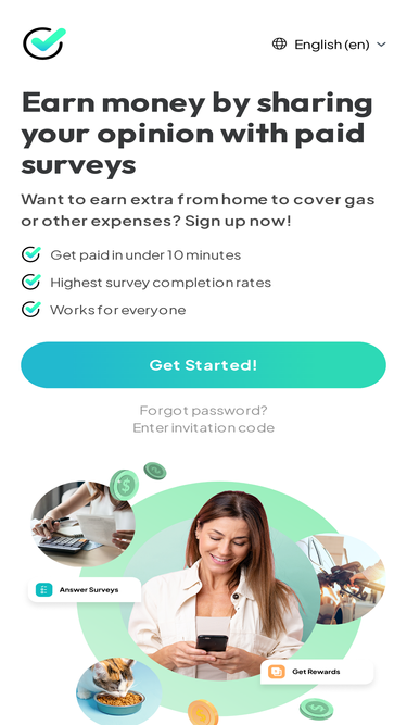 100%Complete surveys and redeem your earnings through PayPal, Amazon, and more.