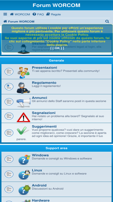 64%sezioni tecniche su windows, linux, android, hardware, grafica e giochi, servizi online utili e dialogo generale.