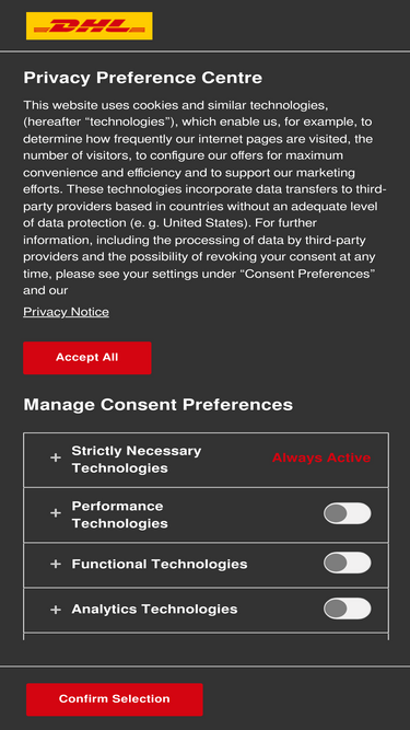 77%DHL website terms and conditions and a statement on DHL's commitment to user privacy on its websites.