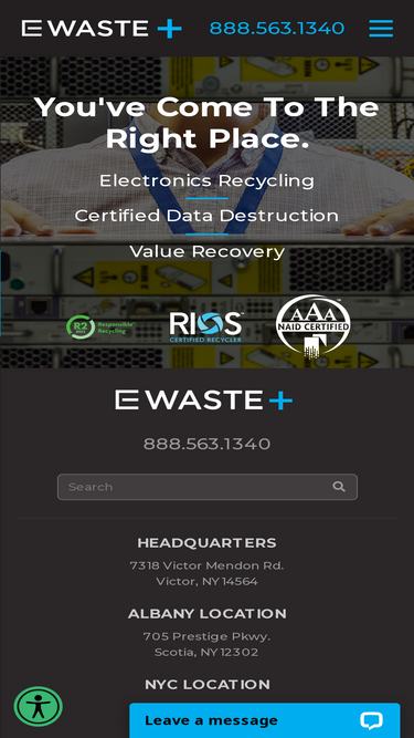 EWASTE+ is an electronics recycling company with offices in Victor, Albany and New York City serving businesses in New York State.