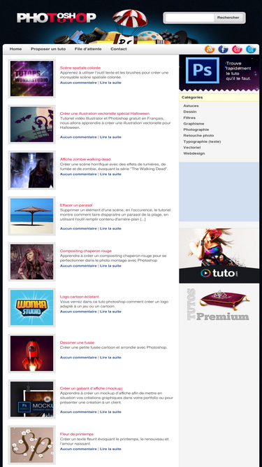 retrouvez les meilleurs tutos pour apprendre photoshop, dans différentes disciplines : webdesign, dessin, retouche photo.
