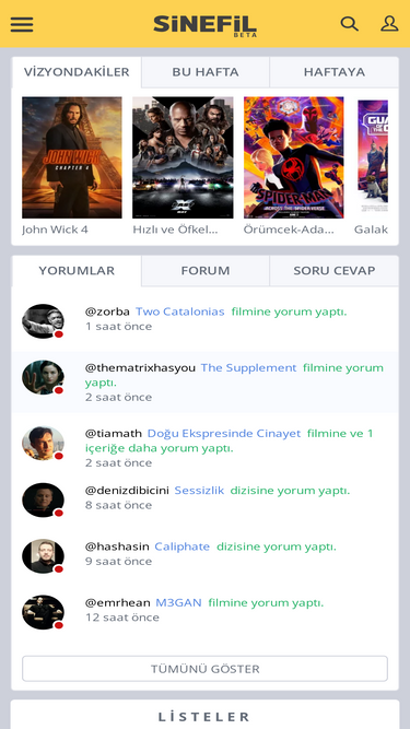 100%sinefil nam-ı diğer filim adamı, sinema ve tv oburları için kurulmuş online arşivleme sitesidir. i̇zlediğiniz film ve dizilerin kaydını tutabilir, listeler oluşturabilirsiniz.