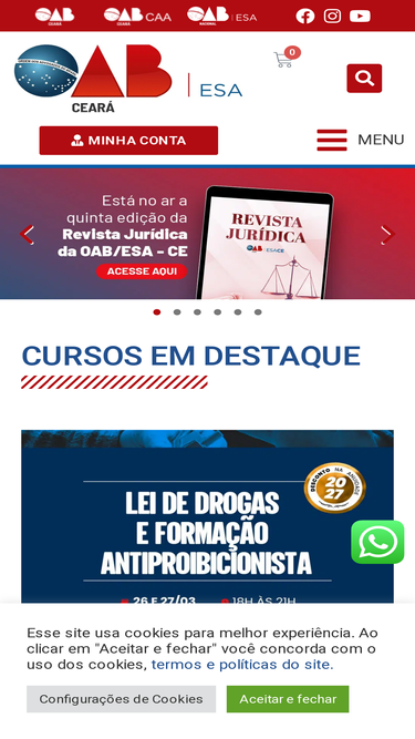 Slide anterior Próximo slide CURSOS EM DESTAQUE VER TODOS NOTÍCIAS VER TODAS GALERIA VER TODAS ESA EM NÚMEROS Acompanhe os números que contam a história da ESA de maneira quantitativa e revelando o seu compromisso com excelência! CLIQUE AQUI E ACESSE