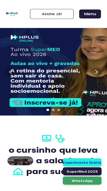 85%Prepare-se para o vestibular de medicina com o Hplus Online! Aulas ao vivo, materiais completos, simulados e suporte personalizado para você conquistar a aprovação dos seus sonhos. Flexibilidade, qualidade e a metodologia que mais aprova.