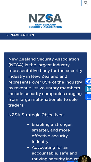77%New Zealand Security Association (NZSA) is the largest industry representative body for the security industry in New Zealand and represents over 85% of the ...