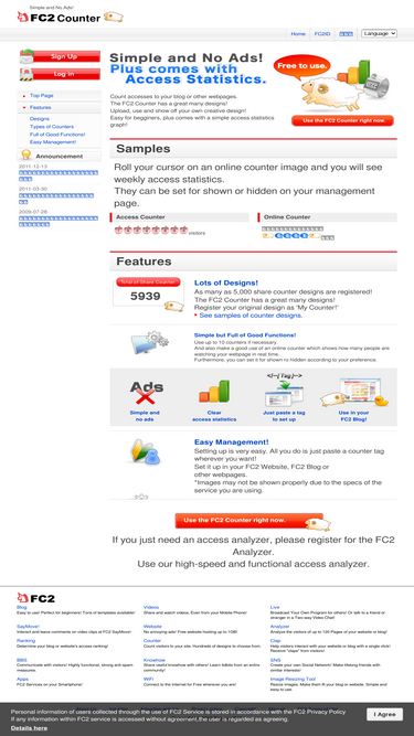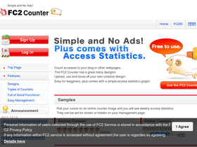 91%the fc2 counter is a free service. 5,000 designs to choose from, no ads, comes with access statistics, double counting prevention, online counter, multiple use available, supports mobiles and original images!