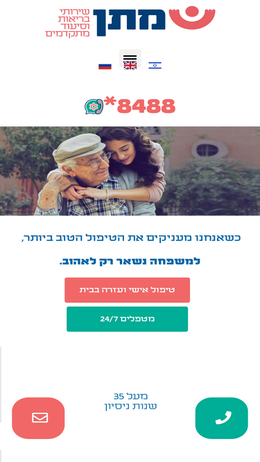 100%מתן – חברת סיעוד וטיפול בקשישים בפריסה ארצית מצפון ועד דרום. שירות מקצועי, אישי וזמין בשבילכם 24/7 – לכל צורך סיעודי, בכל מקום בארץ.