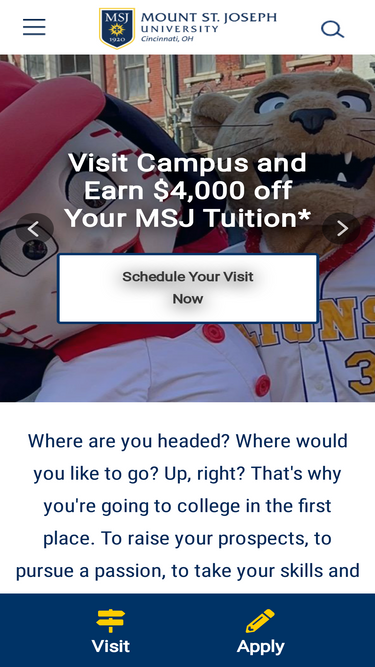 87%since 1920, mount st. joseph university has been a top catholic university in cincinnati, ohio. msj. delivers high-quality academics, hands-on learning and personalized attention from faculty and staff.