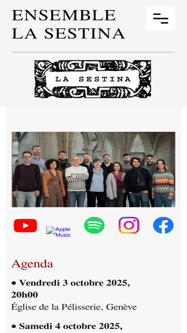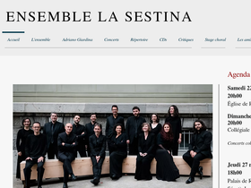 97%Ensemble spécialisé dans l’interprétation de la polyphonie de la Renaissance, aussi bien sacrée que profane. Il exécute de la musique contemporaine à l’occasion. Il est dirigé et a été créé en 1999 par Adriano Giardina. Pour ce qui est de la Renaissance, la volonté de l’Ensemble La Sestina est à la fois d’exhumer des œuvres dormant en bibliothèque ou d’en interpréter d’autres plus connues. La pratique de la musique contemporaine lui permet d’enrichir sa palette expressive.
