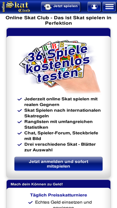 71%Online Skatclub - Spielen Sie Skat, wann immer Sie wollen. Online Skatclub, der Profi Club für jedermann - 36 Spiele unverbindlich testen. Immer reale Gegnern - Internationale DSKV und ISPA Skatregeln - Turniere, Rangliste. Jetzt registrieren und sofort mitspielen.