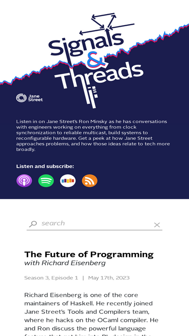 76%a technology podcast, from jane street. get a peek at how jane street approaches technology, and how those ideas relate to the tech landscape more broadly.