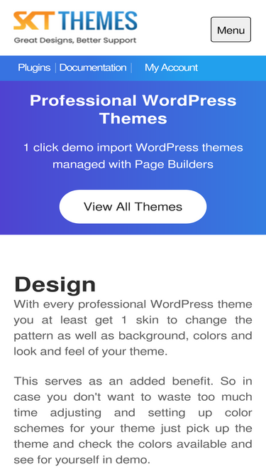 86%Download professional, best WordPress themes and website templates designed by SKT Themes. Get fast & customizable designs for any industry with 1-click demo import WP themes.
