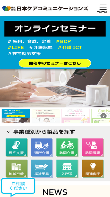 導入数トップクラスの国保連伝送ソフト「ケアネットメッセンジャー」をはじめ、介護請求システムの「キャンビルネオ」、訪問看護支援ソフトの「ココナース」、ケアプラン作成ソフトの「ケアマネくん」など、全介護サービスを幅広くカバーしています。介護に関するセミナー、お役立ち情報、コラムも随時配信してます。