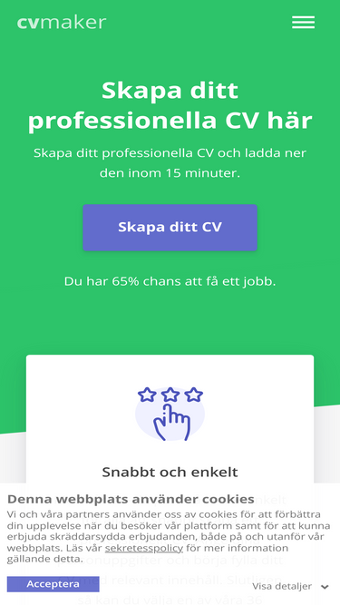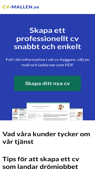 96%Vill du skapa ett perfekt CV gratis? Våra CV-mallar kan laddas ner och användas direkt. Skapa ditt CV snabbt och enkelt. Hitta ditt drömjobb snabbt!