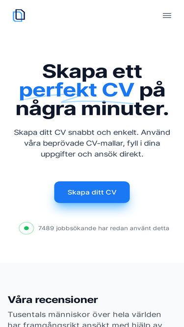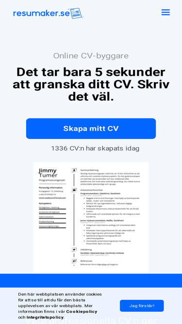 100%Skapa ett professionellt CV på bara 10 minuter med vår praktiska CV-skapare. Ange bara dina personuppgifter, välj mall och ladda ner ditt nya CV som en PDF.