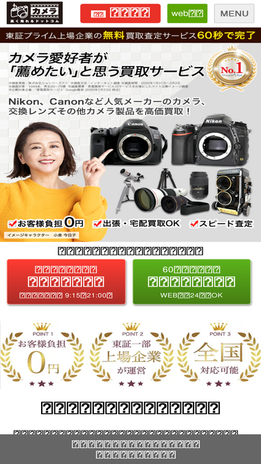 お持ちのカメラを高く売るなら、カメラ高く売れるドットコムにお任せください!デジタル、一眼、ミラーレス、レンズ、天体望遠鏡などのカメラ用品を幅広く買取いたします。宅配・出張・店頭での買取に対応しており、送料・出張料は無料。「大切なカメラをできるだけ高く売りたい」という方は、無料査定をご利用いただくのがおすすめです。