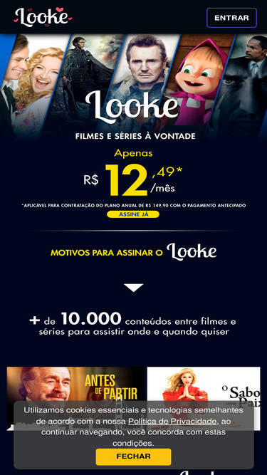 74%O Looke é uma plataforma de streaming completa que oferece acesso ilimitados a filmes, séries, conteúdo infantil, conteúdos originais e exclusivos, e muito mais!