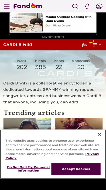 68%OUT NOW ON ALL PLATFORMS! As with any Wiki, we have some ground rules set to keep our community a safe and cordial place. · Blatant vandalism of pages is strictly prohibited. · No hateful behavior directed towards users. · Keep your edits professional, unbiased and formal, not juvenile. · No adding false information. · No adding pages that are not relevant to Cardi. Got a question or don't know where to get started? Ask a staff member! Discography Albums Mixtapes Songs • Singles • Features •...