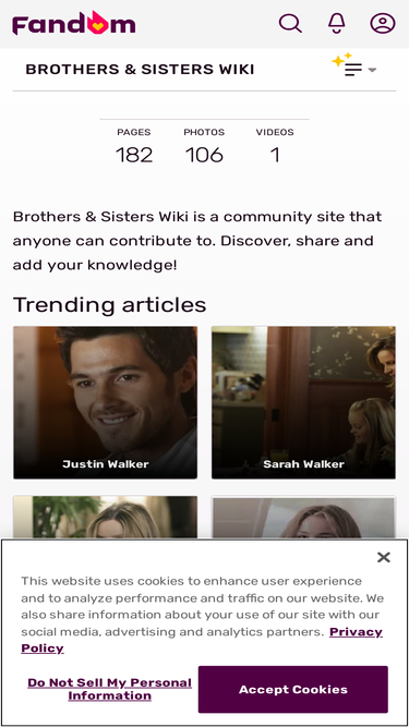 65%brothers & sisters is an american family drama television series that centers on the walker family and their lives in los angeles and pasadena, california. it aired for five seasons on abc from september 24, 2006, to may 8, 2011. for the entirety of its run, it was broadcast on sunday nights...