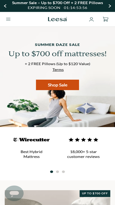 57%Terms & Conditions Welcome to Leesa Sleep LLC’s (“the Company”) website. This site is maintained as a service to our customers.
