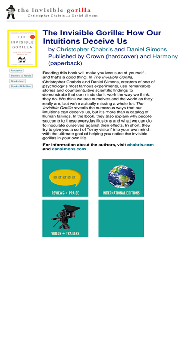 The Invisible Gorilla by Christopher Chabris and Daniel Simons examines the everyday cognitive illusions that affect how we understand ourselves and our world.