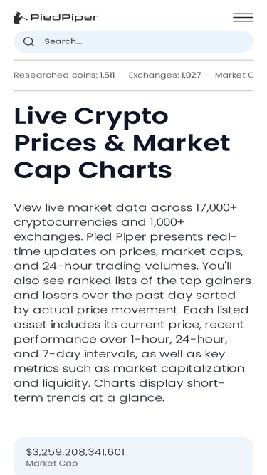 100%Live cryptocurrency prices, market caps, charts & daily insights for a wide range of coins on PiedPiper. Compare trends, top gainers and trading volume 24/7.
