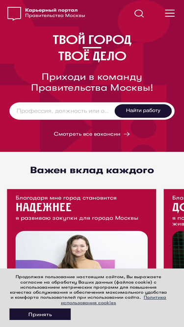 карьерный портал правительства москвы - первоисточник информации о вакансиях и участии в кадровом резерве органов государственной власти столицы. на портале можно не только ознакомиться с вакансиями и конкурсами, но и зарегистрироваться, подать заявку на участие в конкурсе, пройти видеоинтервью
