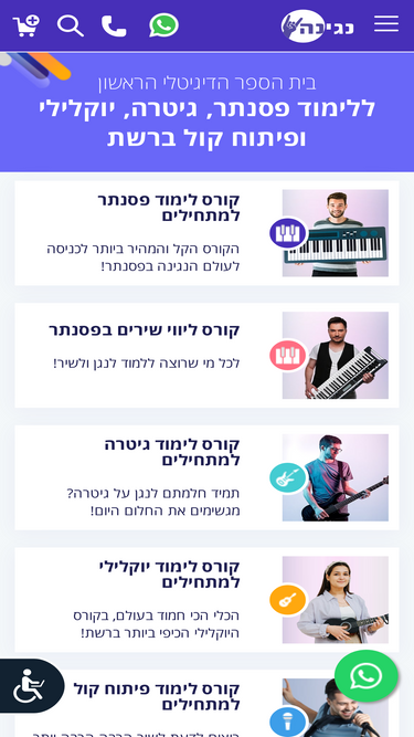 100%האתר הגדול והאיכותי בישראל ללימודי נגינה - שיעורי פסנתר, גיטרה, יוקללי ופיתוח קול למתחילים ומתקדמים. אלפי שירים ושיעורים - מגשימים חלום ולומדים לנגן ולשיר.