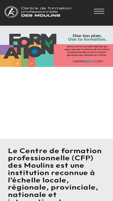 65%Le CFP des Moulins offre des services de formation professionnelle de qualité pour bien répondre aux besoins de ses élèves et de ses partenaires.