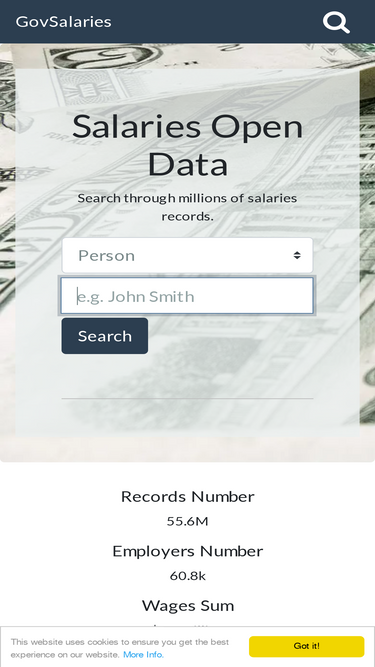 63%govsalaries provides a searchable nationwide salaries database of more than 50 million salaries records.