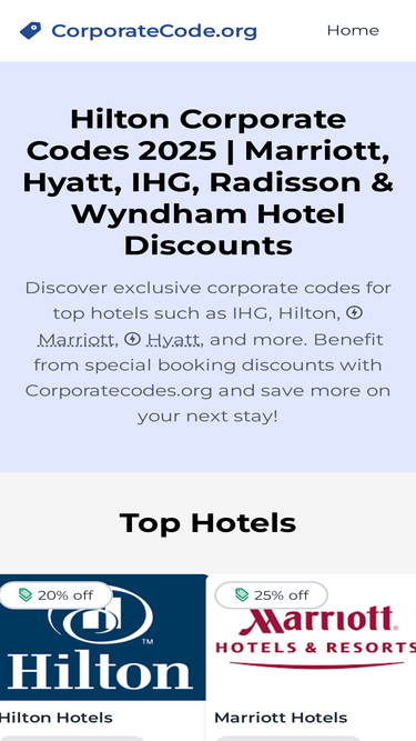 Get discounts using hotel corporate codes. Find and compare the best hotel deals.