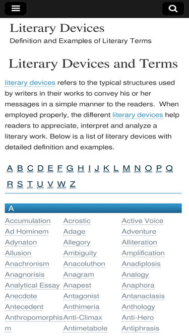 86%Browse through our list of literary devices and literary terms with definitions, examples, and usage tips. Explore each device in depth through literature.