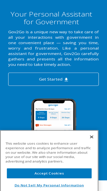 73%gov2go is the easiest way for citizens to keep track of civic duties like paying property tax, renewing vehicle registrations, registering to vote and much more! it’s a smart app that understands your needs, tracks your responsibilities and reminds you when something is due, so you don’t miss a deadline.