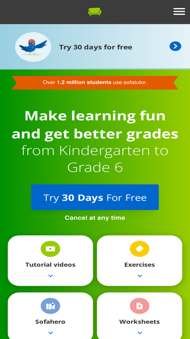 88%The online learning platform sofatutor.com illustrates and visualizes all school material in 1,060 videos. Interactive practical exercises for each video, worksheets to print out, and the daily live help with experts guarantee an all-round service.