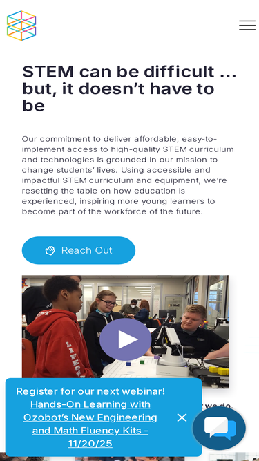 100%Hands-on STEM education with teacher-friendly curriculum and accessible technology. Build real-world skills, confidence, and career connections.