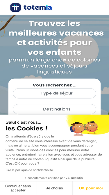 80%totemia vous propose un large choix de colonie de vacances, séjour linguistique et destinations en france, à l'étranger pour les vacances de vos enfants et adolescents