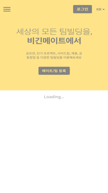 62%세상의 모든 팀빌딩을, 비긴메이트에서 공모전, 단기 프로젝트, 사이드잡, 채용, 공동창업 등 다양한 팀빌딩을 이용해보세요
