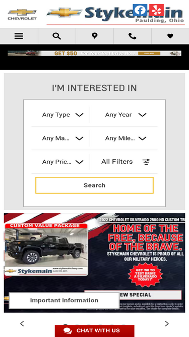 98%stykemain chevrolet is a new and used chevy dealership offering sales, service, and parts to the paulding, oh area.