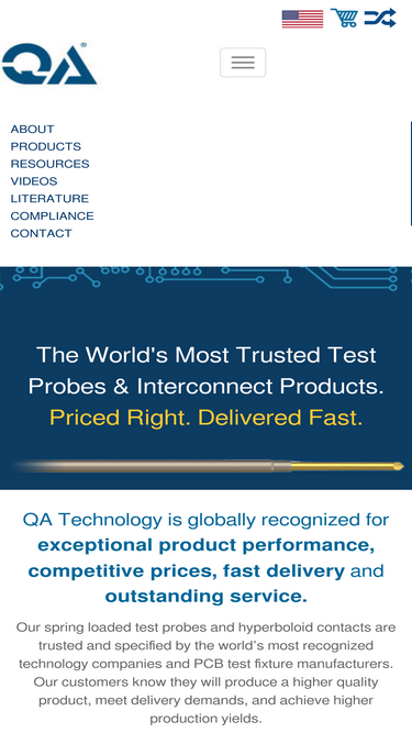 100%qa technology’s comprehensive range of test probes and hyperboloid contacts are trusted and specified by designers and engineers in the world’s most recognized technology companies.