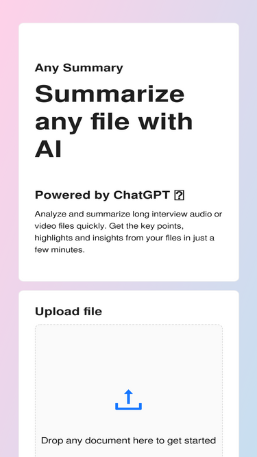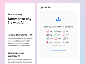 75%Summarize any document, audio or video file with the power of AI.